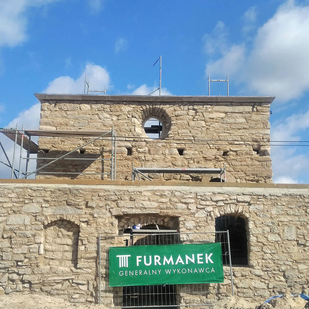 The royal castle in Szydłów was erected by Casimir the Great in the 14th century, and was rebuilt several times. Currently, there is the Regional Museum in Szydłów. We are carrying the works gradually, because some parts of the building require the execution of new structures. We have executed, among others, new external plasters on the entrance gate and we have prepared a steel structure with the pouring of a reinforced concrete ceiling in the Knight’s Hall. The subsequent stages of work are still ahead.