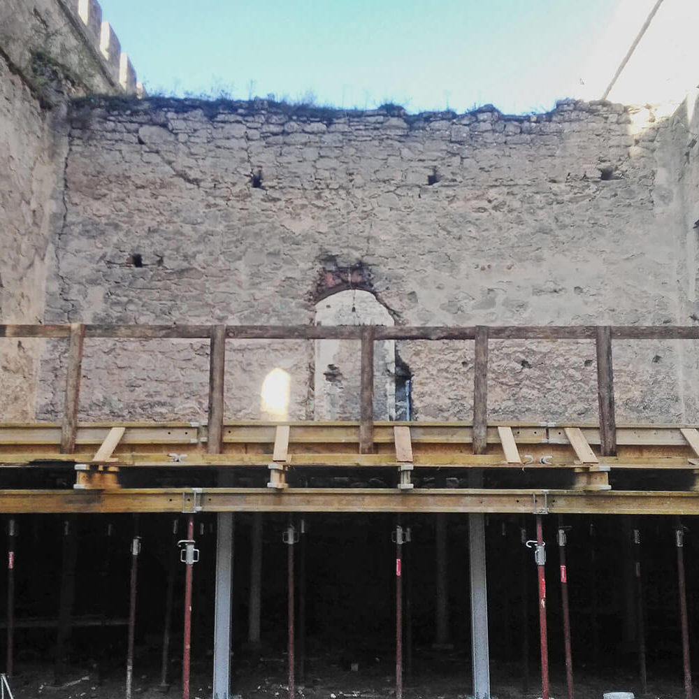 Within the church ruin complex, the works are also running smoothly. Crowns of walls have been rebuilt and we have made a waterproof layer in order to protect them. We have also reconstructed the cornice located in the wall’s crown from the west side in accordance with the conservation guidelines.
