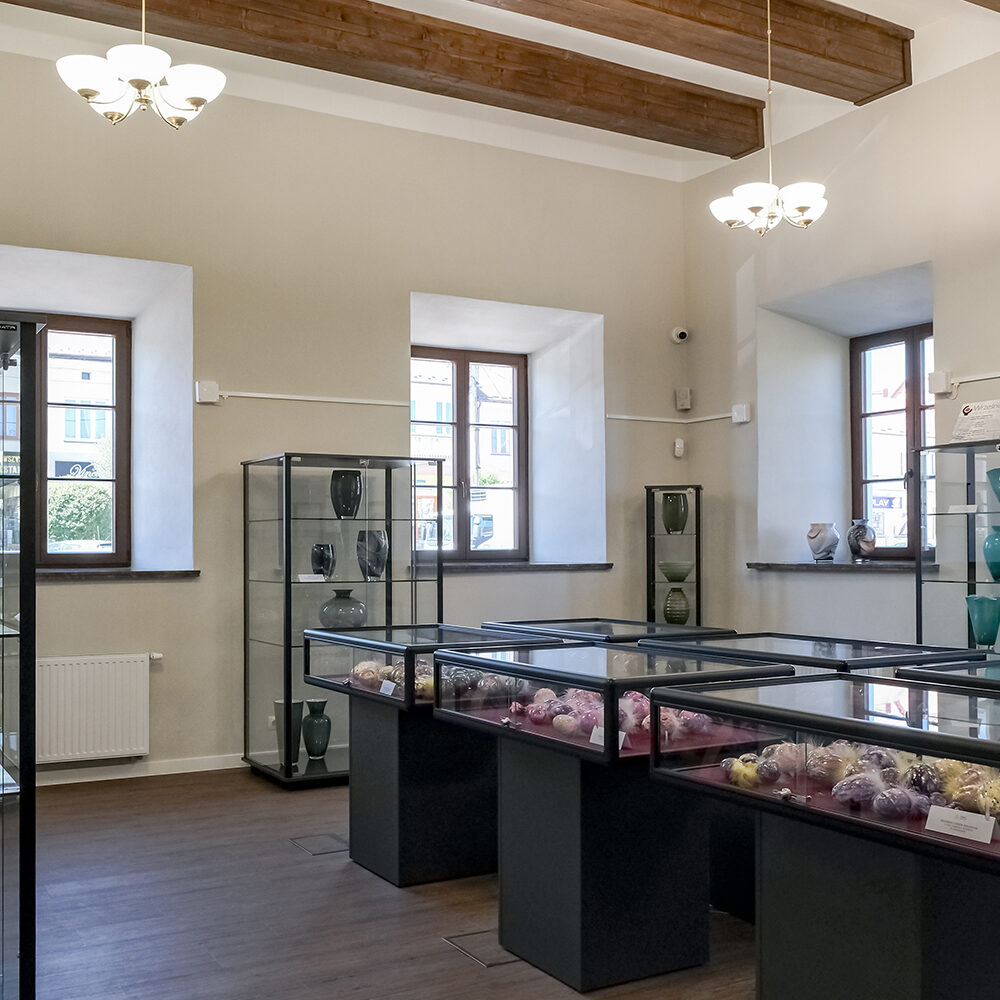 • Na parterze dawne pomieszczenia gastronomiczne i biblioteczne zyskały nowe funkcje. Utworzono nowoczesne sale ekspozycyjne Muzeum Ziemi Staszowskiej, punkt informacji turystycznej, restaurację z zapleczem kuchennym oraz sklep z pamiątkami. Wszystko wykończono z dbałością o detale – naturalny kamień, drewniana stolarka i tynki renowacyjne zapewniły spójność z charakterem budynku.